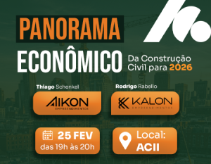 Os construtores Thiago Schenkel (Aikon Empreendimentos) e Rodrigo Rabello (Kalon Empreendimentos) trarão suas perspectivas e estratégias para o cenário econômico da construção civil neste ano tão incerto. Será uma roda de conversa enriquecedora com quem constrói e incorpora na região sobre os desafios previstos para 2026! Não percam!